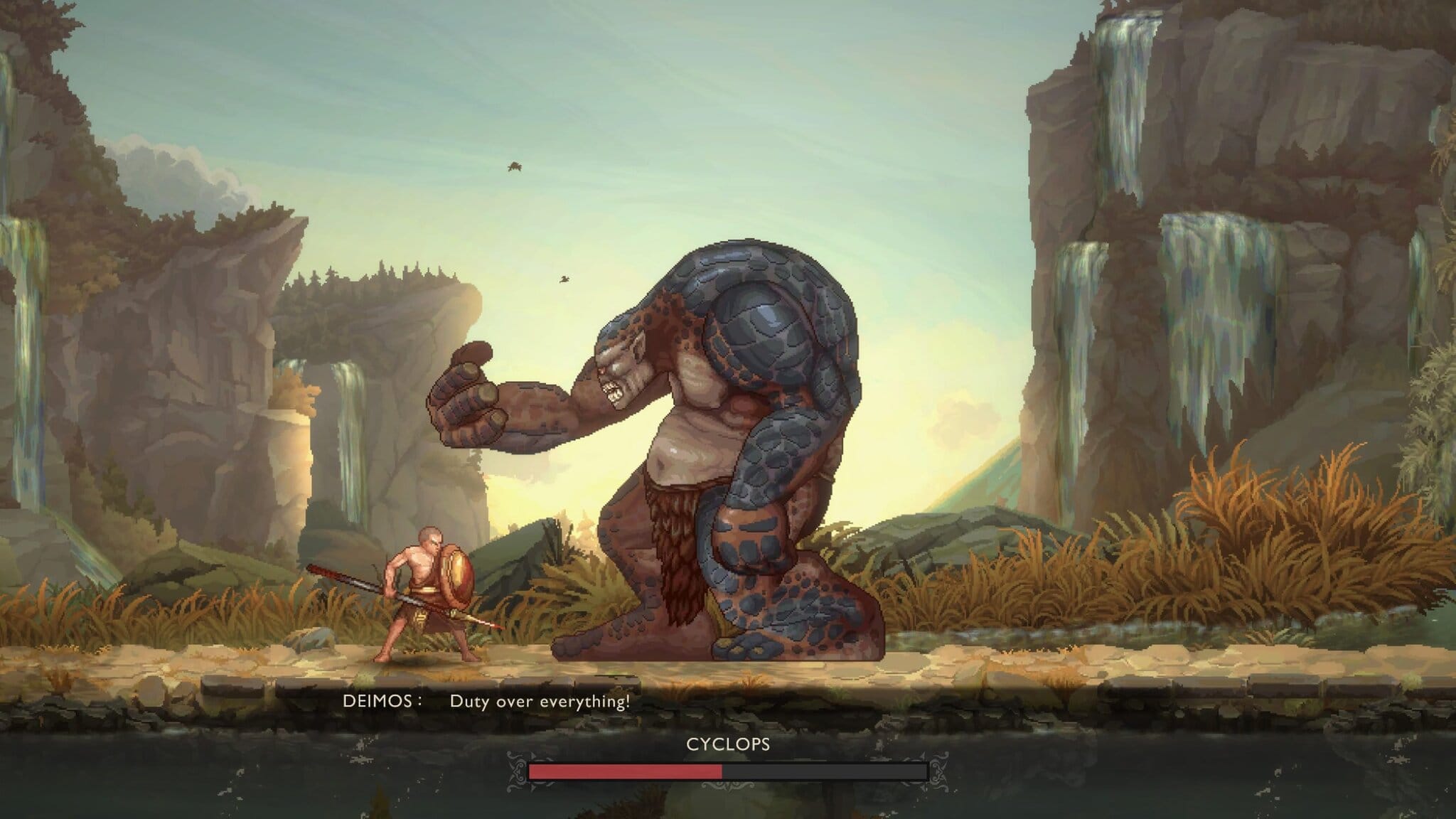 Kratos je tu ešte pedantný dodržiavač pravidiel, Deimos je naopak impulzívny idealista. Problém je, že hra tento potenciál pochováva v plytkej vode – väčšina vedľajších príbehov v lokáciách, na ktoré počas cesty narazíš, zostane nedotiahnutá a len zriedka sa ponorí hlbšie.