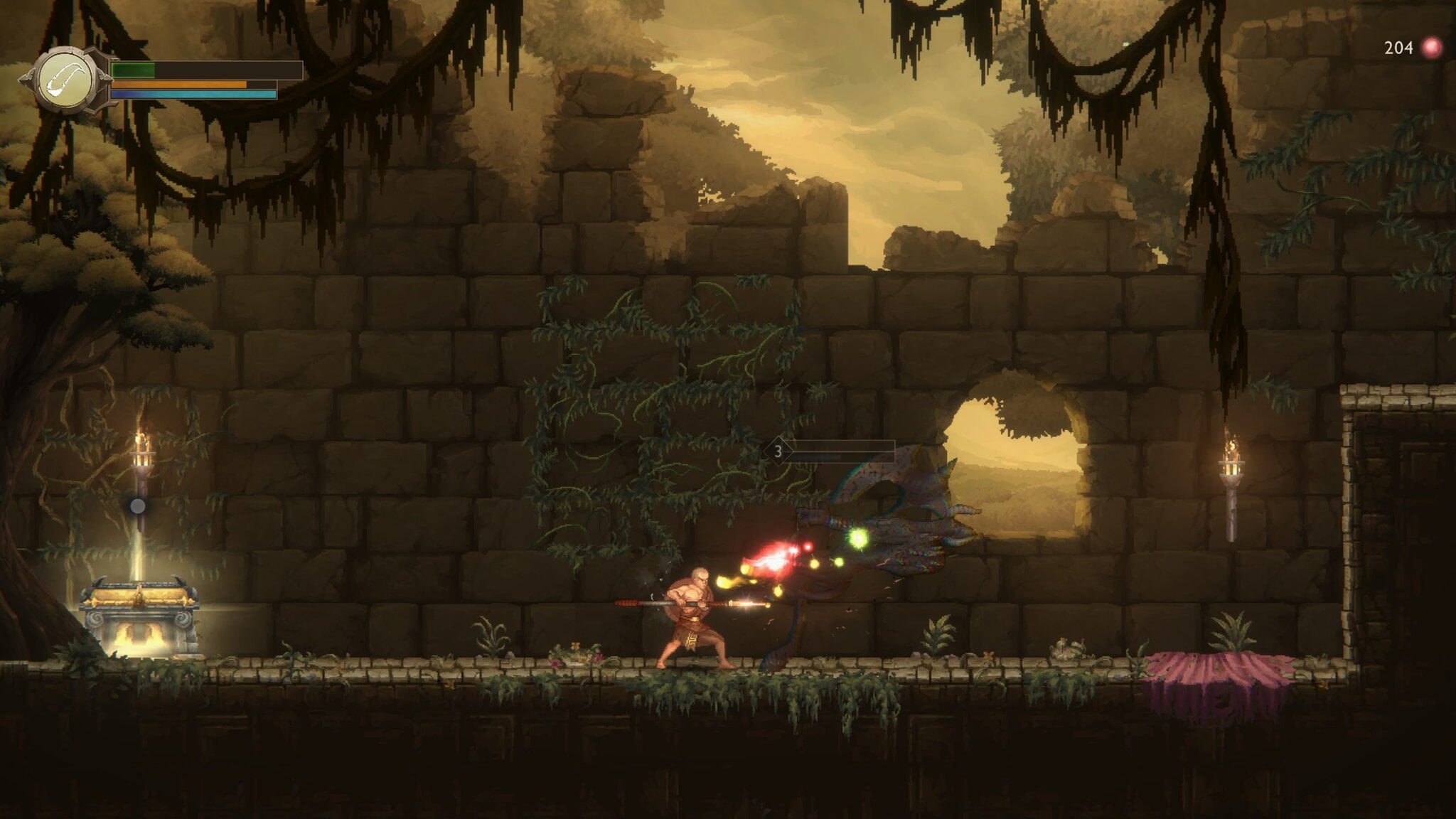 Na svojej ceste nájdeš napríklad prak, ktorým vieš aktivovať vzdialené vypínače alebo ohnivý plameň, ktorým okrem zapaľovania nepriateľov dokážeš spáliť tŕnisté konáre blokujúce cestu. Ide o klasický metroidvania dizajn v najčistejšej forme a pocítiš aj typickú satisfakciu z postupného odkrývania mapy a zbierania vecí.