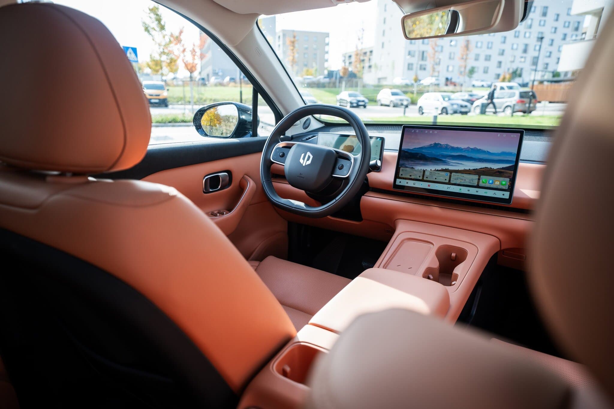 Inak je interiér naozaj prehľadný, s dostatkom odkladacieho priestoru a necháva vyniknúť dvojicu displejov – 10,2″ palubný displej vodiča a až 14,6“ displej infotainmentu. Oba sú naozaj vynikajúce z pohľadu zobrazovacej kvality a rýchlosti a ten najväčší ponúka naozaj široké možnosti personalizácie. V jeho spodnej časti displeja sú praktické skratky na obľúbené aplikácie a ovládanie klimatizácie. Ikonky sú trochu malé a občas sa mi stalo, že na nerovnej ceste som sa musel stláčaniu venovať viac ako by bolo vhodné. Spomenul by som ešte ovládanie na volante, ktoré našťastie ponúka fyzické ovládanie s ovládačmi alá Tesla. Chce to trochu cviku ale po pár jazdách som si zvykol.